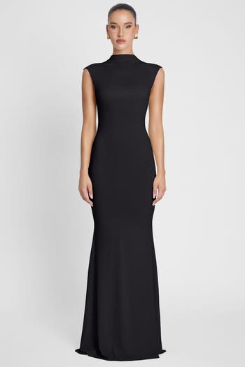This maxi dress is cut from double-lined sculpting stretch jersey with a mock neckline and cap sleeves that flow into a slightly flared mermaid hem for a body-hugging silhouette.