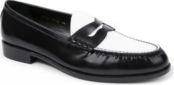 Bold contrasts leather and classic penny strap. Lightweight Blake construction for comfort, perfect for stylish, upscale casual looks.