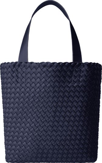 Artfully handwoven from durable material, this spacious shopper tote features a spacious interior and zip compartment for easy organization while on the go.
