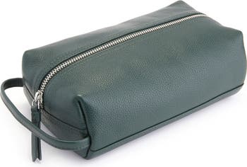 Organize all of your toiletry essentials with ease in this nappa leather bag featuring water-resistant lining and a side carry handle for added convenience.