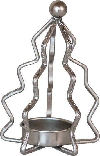 - A compact metal tree shaped tealight holder that brings a whimsical touch to any setting
