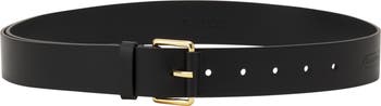 This raw-edged leather belt features a metal buckle engraved with the Lanvin logo. It is the perfect accessory for an elegant daytime or evening outfit.