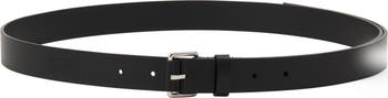 This raw-edged leather belt features a metal buckle engraved with the Lanvin logo. It elegantly accessorizes both day and evening outfits.