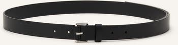 This raw-edged leather belt features a metal buckle engraved with the Lanvin logo. It elegantly accessorizes both day and evening outfits.
