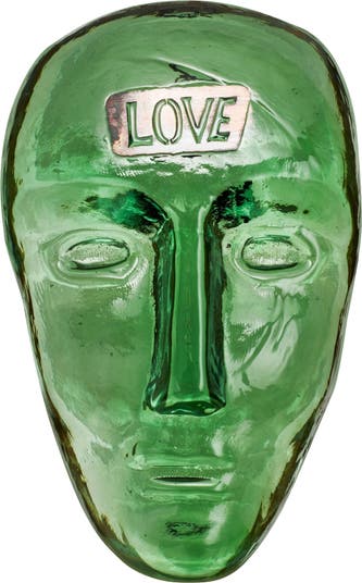 Designed as part of the Swedish brand's Companion collection, this sculpture of a mask is crafted from repurposed waste glass. As the glass varies in shade, each piece receives a unique color DNA.