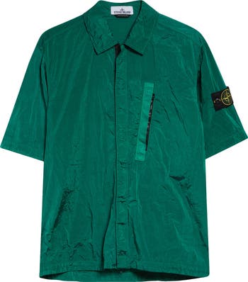 Stone Island's adventure-ready aesthetic comes through in this comfort-fit camp shirt cut from the brand's own Nylon Metal—a fabrication that features ECONYL® regenerated yarns that then undergoes an elaborate double-dye procdure. The signature button-off compass-logo patch signifies provenance on one sleeve.
