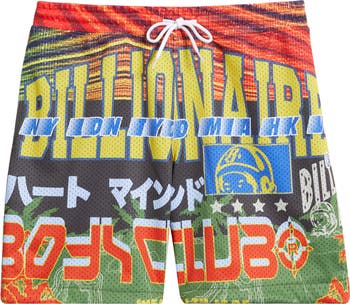 Go bold in sporty shorts cut from lightweight mesh and splashed with vibrant graphics.