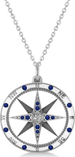 14K white gold compass pendant necklace accented with diamonds (0.19ct), providing subtle sparkle in a classic, elegant design.