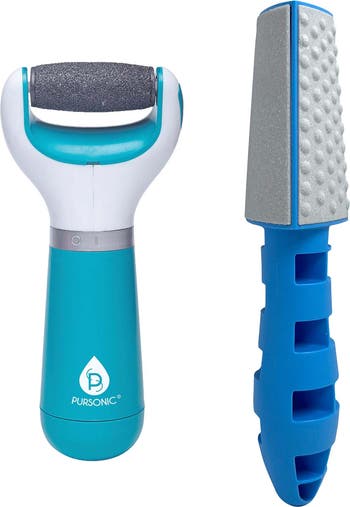- What’s Included: 1. Pursonic Battery-Operated Callus Remover Effortlessly achieve smooth, soft feet with this handheld powerhouse: Effortless Callus Removal: Quickly eliminates hard, dry skin with minimal effort. Safe & Gentle: Avoids cuts and scrapes for a safer, more effective experience. Battery-Powered Convenience: Operates with 4 AA batteries (not included) for powerful 3W performance anytime, anywhere. Waterproof Design: Perfect for wet or dry use, making it shower-friendly and easy to clean. Ergonomic Comfort: Lightweight, comfortable design ensures easy, strain-free use. 2. Pursonic 3-in-1 Callus Remover Versatile and efficient, this manual tool is equipped with three grinding surfaces to tackle any foot care need: Fine Grinding Surface: Ideal for delicate skin and light callus removal. Medium Grinding Surface: Perfect for newly formed calluses and general maintenance. Rough Grinding Surface: Targets years of accumulated thick skin with ease. Non-Slip Handle: Offers secure and comfortable grip for precise control. Easy to Operate: Simple design makes it a user-friendly addition to your routine. Why Choose This Bundle? Comprehensive Care: Tackle calluses, dead skin, and rough spots with a complete toolkit for smooth, healthy feet. Safe & Effective: Designed for safety and ease, making it suitable for everyone from beginners to experienced users. Versatility: Perfect for both wet and dry skin, offering flexibility in how and where you use it. Portable & Convenient: Compact and battery-operated tools make it easy to maintain soft feet at home or on the go. Cost-Effective: Save on salon visits with professional-quality results at a fraction of the price. The Perfect Gift for Self-Care Enthusiasts This bundle is an excellent gift for anyone who values self-care and wellness. Whether it’s for a loved one or yourself, the Pursonic Complete Callus Care Bundle is the ultimate solution for smooth, beautiful feet. Order now and elevate your foot care routine with Pursonic!