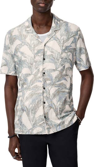 A desert dwelling fades against the richly textured backdrop of this camp shirt cut from a drapey linen-kissed blend that keeps things cool and breathable wherever your plans take you.