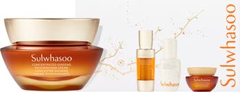 Concentrated Ginseng Rejuvenating Eye Cream: Water / Aqua / Eau, Squalane, Butylene Glycol, Polyglyceryl-3 Methylglucose Distearate, Dimethicone, Cetyl Ethylhexanoate, Propanediol, Glyceryl Stearate, Cetearyl Alcohol, Phytosteryl Isostearyl Dimer Dilinoleate, Behenyl Alcohol, 1,2-Hexanediol, Glycerin, Hydrogenated Castor Oil Isostearate, Panax Ginseng Root Water, Polyacrylate-13, Silica, Ammonium Acryloyldimethyltaurate/Beheneth-25 Methacrylate Crosspolymer, Polyisobutene, Fragrance / Parfum, Hydrolyzed Ginseng Saponins, Glyceryl Caprylate, Glycine Soja (Soybean) Oil, Polymethyl Methacrylate, Ethylhexylglycerin, Sodium Metaphosphate, Polysorbate 20, Thymol Trimethoxycinnamate, Sorbitan Isostearate, Dextrin, Theobroma Cacao (Cocoa) Extract, Linalool, Retinol, Mannitol, Panax Ginseng Root Extract, Sodium Chloride, Limonene, Rehmannia Glutinosa Root Extract, Paeonia Lactiflora Root Extract, Panax Ginseng Flower Extract, Polygonatum Odoratum Rhizome Extract, Nelumbo Nucifera Flower Extract, Lilium Tigrinum Bulb Extract, Caprylyl Glycol, Tocopherol, Acetyl Heptapeptide-4, Acetyl Tetrapeptide-11, Hexapeptide-9, Acetyl Hexapeptide-8, Sodium Hydroxide, Acetyl Octapeptide-3<br />Concentrated Ginseng Rejuvenating Cream: Water / Aqua / Eau, Butylene Glycol, Dimethicone, Glycerin, Triethylhexanoin, Squalane, Hydrogenated Polyisobutene, 1,2-Hexanediol, Vinyl Dimethicone/Methicone Silsesquioxane Crosspolymer, Hydroxyethyl Acrylate/Sodium Acryloyldimethyl Taurate Copolymer, Cetearyl Olivate, Methoxy Peg-114/Polyepsilon Caprolactone, Cetearyl Alcohol, Sorbitan Olivate, Glyceryl Stearate, Palmitic Acid, Stearic Acid, Arachidyl Alcohol, Fragrance / Parfum, Behenyl Alcohol, Hydrolyzed Ginseng Saponins, Glyceryl Caprylate, Mannitol, Sorbitan Isostearate, Polysorbate 60, Arachidyl Glucoside, Phenoxyethanol, Ethylhexylglycerin, Sodium Metaphosphate, Sodium Stearoyl Glutamate, Linalool, Tocopheryl Acetate, Ascorbyl Tetraisopalmitate, Dextrin, Panax Ginseng Root Extract, Theobroma Cacao (Cocoa) Extract, Limonene, Sodium Chloride, Rehmannia Glutinosa Root Extract, Paeonia Lactiflora Root Extract, Panax Ginseng Flower Extract, Polygonatum Odoratum Rhizome Extract, Nelumbo Nucifera Flower Extract, Lilium Tigrinum Bulb Extract, Acetyl Tetrapeptide-11, Caprylyl Glycol, Tocopherol, Acetyl Heptapeptide-4, Hexapeptide-9, Acetyl Hexapeptide-8, Sodium Hydroxide, Acetyl Octapeptide-3<br />Concentrated Ginseng Rejuvenating Serum: Water / Aqua / Eau, Butylene Glycol, Glycerin, Methyl Gluceth-20, Cetyl Ethylhexanoate, Behenyl Alcohol, Betaine, 1,2-Hexanediol, Methoxy Peg-114/Polyepsilon Caprolactone, Niacinamide, Carbomer, Tromethamine, Phenyl Trimethicone, Caprylyl Methicone, Jojoba Esters, Fragrance /Parfum, Hydrolyzed Ginseng Saponins, Glyceryl Caprylate, Phenoxyethanol, Arachidyl Alcohol, Ethylhexylglycerin, Dextrin, Theobroma Cacao (Cocoa) Extract, Sodium Metaphosphate, Linalool, Arachidyl Glucoside, Panthenol, Mannitol, Panax Ginseng Seed Oil, Glycine Soja (Soybean) Oil, Panax Ginseng Root Extract, Sodium Chloride, Panax Ginseng Leaf/Stem Extract, Limonene, Rehmannia Glutinosa Root Extract, Paeonia Lactiflora Root Extract, Panax Ginseng Flower Extract, Polygonatum Odoratum Rhizome Extract, Nelumbo Nucifera Flower Extract, Retinol, Propanediol, Lilium Tigrinum Bulb Extract, Hydrogenated Lecithin, Sodium Hyaluronate, Tocopherol, Caprylyl Glycol, Pentaerythrityl Tetra-Di-T-Butyl Hydroxyhydrocinnamate, Phytosphingosine, Sodium Polyaspartate, Hydrolyzed Hyaluronic Acid, Acetyl Heptapeptide-4, Sodium Hyaluronate Crosspolymer, Acetyl Tetrapeptide-11, Sodium Methyl Stearoyl Taurate, Hyaluronic Acid, Acetyl Hexapeptide-8, Sodium Hydroxide, Hexapeptide-9, Sodium Acetylated Hyaluronate, Acetyl Octapeptide-3<br />First Care Activating Serum Vi: Water / Aqua / Eau, Alcohol Denat., Butylene Glycol, Betaine, 1,2-Hexanediol, Bis-Peg-18 Methyl Ether Dimethyl Silane, Glyceryl Polymethacrylate, Propanediol, Carbomer, Ppg-13-Decyltetradeceth-24, Tromethamine, Glyceryl Caprylate, Scutellaria Baicalensis Root Extract, Ethylhexylglycerin, Fragrance / Parfum, Adenosine, Limonene, Dextrin, Theobroma Cacao (Cocoa) Extract, Methyl Trimethicone, Disodium Edta, Xanthan Gum, Cellulose Gum, Carrageenan, Honey / Mel / Miel, Madecassoside, Rehmannia Glutinosa Root Extract, Pentylene Glycol, Dipotassium Glycyrrhizate, 3-O-Ethyl Ascorbic Acid, Taurine, Ophiopogon Japonicus Root Extract, Paeonia Lactiflora Root Extract, Lilium Candidum Bulb Extract, Linalool, Polygonatum Odoratum Rhizome Extract, Biosaccharide Gum-1, Propylene Glycol, Panax Ginseng Root Extract, Nelumbo Nucifera Flower Extract, Natto Gum, Ziziphus Jujuba Fruit Extract, Juglans Regia (Walnut) Seed Extract, Prunus Mume Fruit Extract, Citronellol, Citral, Geraniol, Hydrogenated Lecithin, Tocopherol, Citric Acid