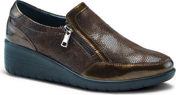A padded insole cushions each step you take in this snake-print sneaker set on a walkable wedge heel.