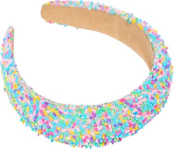 Celebrate playful style with this confetti puff headband, featuring a padded design covered in colorful confetti-like details. Perfect for adding a fun and festive touch to any outfit, it offers comfortable wear for girls of all ages.