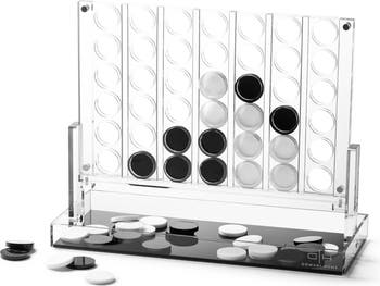 The classic four-in-a-row game has been recreated in a modern style with a clear board and black-and-white pieces