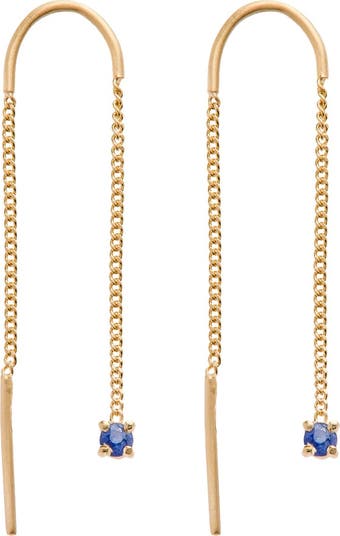 Connection Chain Threader Earrings Natural Sapphire. Handmade in Italy