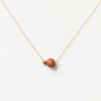 A 7mm sandalwood bead and a 4mm gold fill sphere, side by side on a fine gold fill chain. Warm wood against warm gold — two simple elements that somehow feel like more than the sum of their parts. A lot of people wear this one to represent a bond — a mother and daughter, a mama and her baby, two people who belong together. Small enough to be subtle, meaningful enough to keep reaching for. Ethically sourced sandalwood bead, 7mm. 4mm gold fill sphere. Handcrafted in 14k gold fill. Adjustable chain. Lobster clasp.