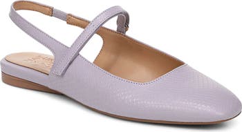 An adjustable mary jane strap lends easy wear and retro-inspired style to a slingback flat fashioned with a squared-off toe and set on a signature comfort footbed.