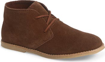 Supple suede wraps the upper of a kid-sized chukka boot grounded by a cushioned footbed and sturdy rubber sole.