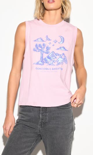 Take a mindful moment in the breathable comfort and relaxed fit of this graphic tank cut from a cotton knit that feels vintage soft from the first wearing.