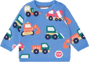 Meet the 'wear everywhere' sweater. This knit jumper is made from premium organic cotton in a deliciously soft jacquard knit with our custom construction print. Light enough to layer and cosy enough to wear on its own, it'll keep your little one snug as a bug. Featuring shoulder buttons in baby sizes for easy dressing.