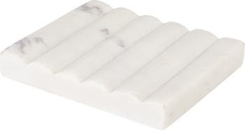 - This white soap dish has been expertly crafted from marble of the finest quality for a sturdy, durable and scratch-resistant construction; it has a rectangular shape, with grooved top surface