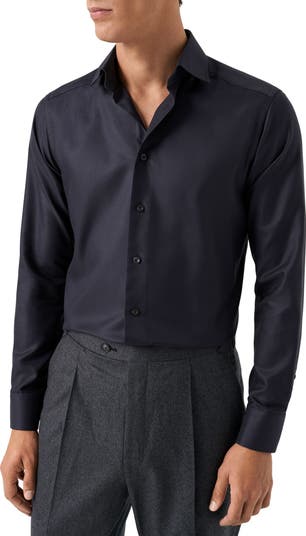 Diagonally ribbed cotton dobby brings polish and texture to a dress shirt designed with cuffs that flip from barrel styling to French to elevate any semiformal look. The lower hem stays securely tucked in place whether you're moving through a busy day, enjoying a special evening or traveling for work.