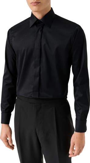 Finely woven Supima cotton brocade brings subtle texture and a handsome finish to a dress shirt styled to complement any semiformal outfit.