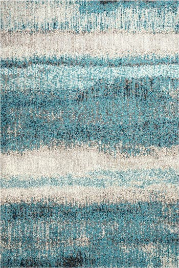 Broad strokes of color inspire this painterly rug. Bold design with a tranquil effect, the super soft polypropylene is power loomed for the tightest possible weave, making the design look even more stunning in person. In shades of blue, aqua, beige, and gray it has a mélange of hues that would suit many design styles.