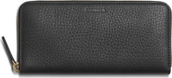 Aged-finish hardware and richly pebbled leather highlight the slender profile of a continental wallet featuring a multitude of pockets and slots perfect for securing your cards, cash and coins.