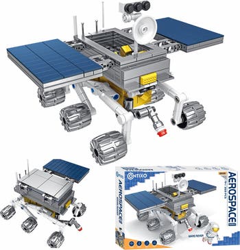 This advanced 359-piece aerospace construction set is engineered to replicate the mechanical systems of a modern autonomous Martian explorer. Manufactured from high-impact, non-toxic ABS plastic, the kit features a multi-axle chassis equipped with high-traction wheels designed for simulated off-road traversal. The model includes a fully articulated robotic manipulator arm, a telemetric satellite dish, and integrated scientific instrument modules. Utilizing a precision interlocking system, the set provides structural stability during interactive play while introducing foundational concepts in mechanical engineering, robotics, and planetary science. This detailed model serves as a comprehensive STEM educational tool, promoting fine motor skill development and spatial reasoning through complex 3D assembly.