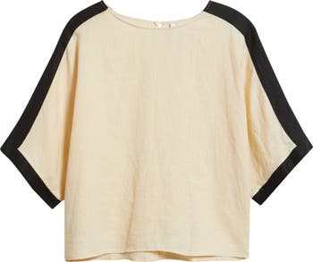 Contrast details trace the swingy silhouette of a boxy linen top that's all in for sunny days and warm nights.