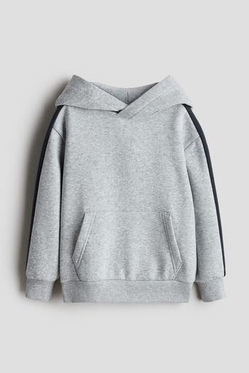 Hoodie in lightweight sweatshirt fabric with a soft brushed inside. Features a jersey-lined, wrapover hood, dropped shoulders and long sleeves with contrast-fabric panels. Kangaroo pocket and ribbing at the cuffs and hem.