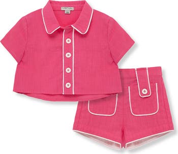 Made of breathable cotton, this adorable set will keep baby looking their sweetest with crisp contrast piping and precious button tabs.