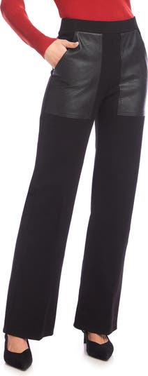 Faux-leather patch pockets give biker vibes to these straight-leg pants made from double-stretch twill.