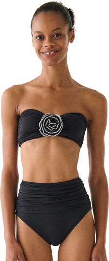 This bandeau bikini top is beautifully blooming with a rosette detail at the neckline for a chic and cheery swim top. Add the detachable strap for more support.