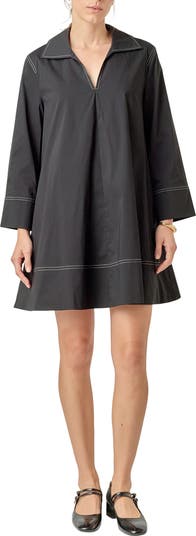 Contrast stitching highlights the lines of a crisp poplin minidress framed by a retro johnny collar and popped with handy pockets.