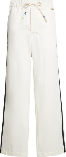 Track pants made from supercompact cotton gabardine are enriched with a glossy water-repellent finish and detailed with textured brushstroke-effect stripes down the sides for an artistic twist on the original.