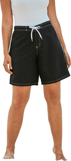 A sporty style with a feminine touch featuring contrast trim and piping. Crafted in a longer length, these shorts pair well over swim bottoms, just add your favorite tankini and you're destined to be beach-ready.
