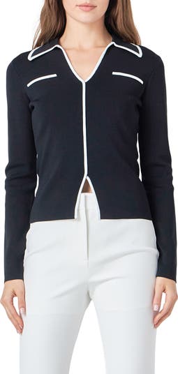 Chic contrast trim lends modern edge to a fitted long-sleeve top that's a versatile layer at the office and beyond.