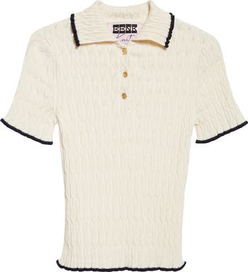 Designer Lee Hyemee's 'The Letter Project' has a special 'K for knit' line for pieces like this cotton-rich polo, where delicate pointelle stitching, elegant cables and contrast trim create a nuanced interplay of color and texture.