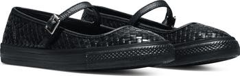 A kicked-up look with a pared-down profile, this ultralow-top sneaker stays fresh with a breathable openwork upper and a pair of slender mary jane straps. The glossy cupsole and All Star license plate keep every step grounded in heritage details and sneakerhead approval.