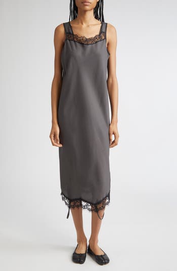 The subversive French fashion house gives underpinnings top billing in this lace-kissed satin dress designed to be worn in two equally alluring configurations—upside down or right side up.