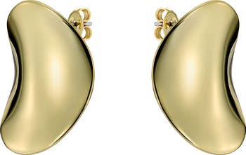 Contoured edges and a high-polish shine lend visual interest to stud earrings that bring contemporary charm to your everyday stack.
