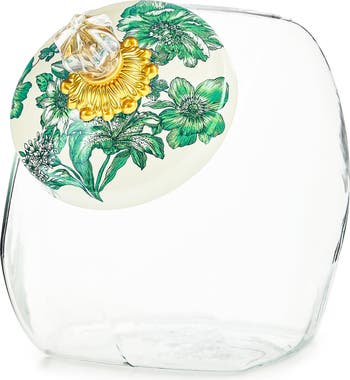 Keep cookies and treats fresh in this glass jar with a lid featuring the brand's signature English Garden motif and highlighted by an elegant glass knob.