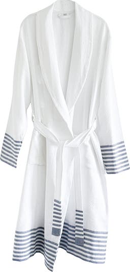 Unwind in style at the beach house with our Cool Cotton Sailing Stripe Robe. Effortlessly chic, this robe offers a comfortable escape. It's not just fashionable but also easy to care for with its machine washable feature. Plus, enjoy the perfect fit with its unisex sizing. Made from 100% cotton, it's a cozy essential for your leisurely moments. Made in Turkey.