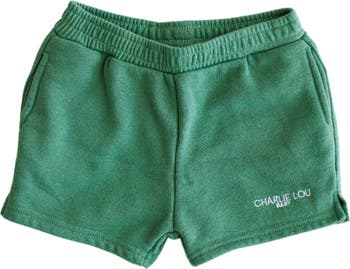 This item runs large, size down.\nStep into refined style with our Cool Kid Athletic Shorts, a perfect choice for little ones who want to emulate the sophisticated look of country club attire. These dark green shorts feature the charming "Charlie Lou Baby" embroidery in white, adding a touch of elegance to their appearance.\nDesigned with functionality in mind, our Kid Club Shorts are equipped with functional pockets, providing a convenient storage solution for their little treasures. The side slits not only enhance the overall aesthetic but also allow for easy movement and comfort during playtime or casual outings.\nMade from high-quality cotton on the outside and lined with soft and cozy polyester French Terry on the inside, these shorts offer a delightful combination of comfort and durability. Your child will feel at ease while exuding a casually athletic style that's perfect for any occasion.\nComplete the picture-perfect matching look with our Mom Club Shorts. Together, you and your child will embody the classic elegance of country club fashion while enjoying the relaxed and comfortable fit of these shorts.\nNote: Don't forget to check out our matching Mom Club Shorts for a coordinated and fashionable parent-child ensemble.