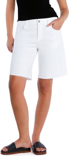 Effortlessly cool any time of year, these laid-back shorts are made with stretchy denim and raw hems that can be cuffed or worn long.