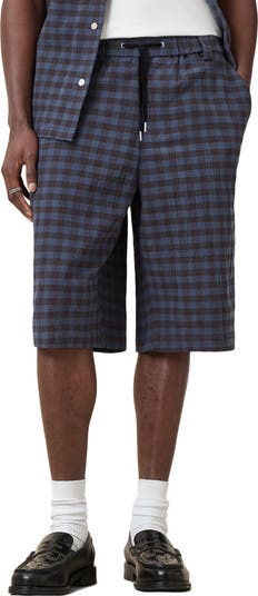Cut from finely textured cotton crepe in a muted plaid pattern, these relaxed drawstring shorts are as ready for your kicked-back weekend plans as you are.