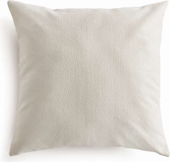 The indoor pillow that lives beautifully outdoors. Enjoy the upscale luxury and durability of Jacquard. With a woven light cream tone, it plays well with any palette. This pillow is weather resistant and responsibly made. Filled with 100% recycled fibers.