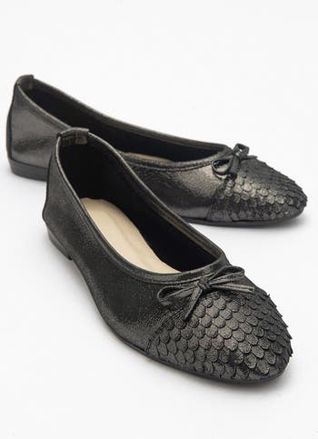 An elegant, handcrafted ballet flat that blends refined craftsmanship with playful shimmer